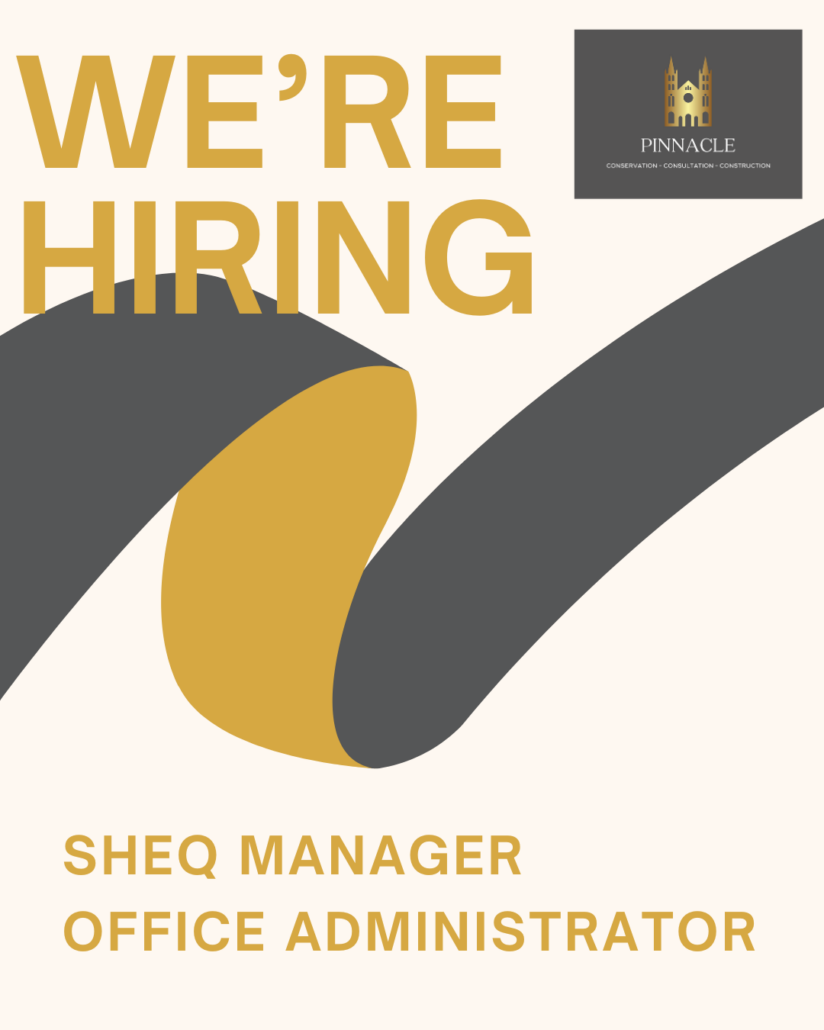 SHEQ MANAGER – Pinnacle Conservation is seeking a dedicated SHEQ Manager to lead our commitment to Safety, Health, Environment, and Quality across all our heritage and conservation projects.